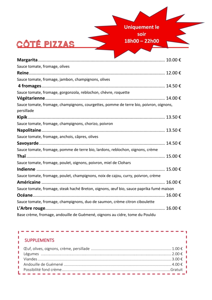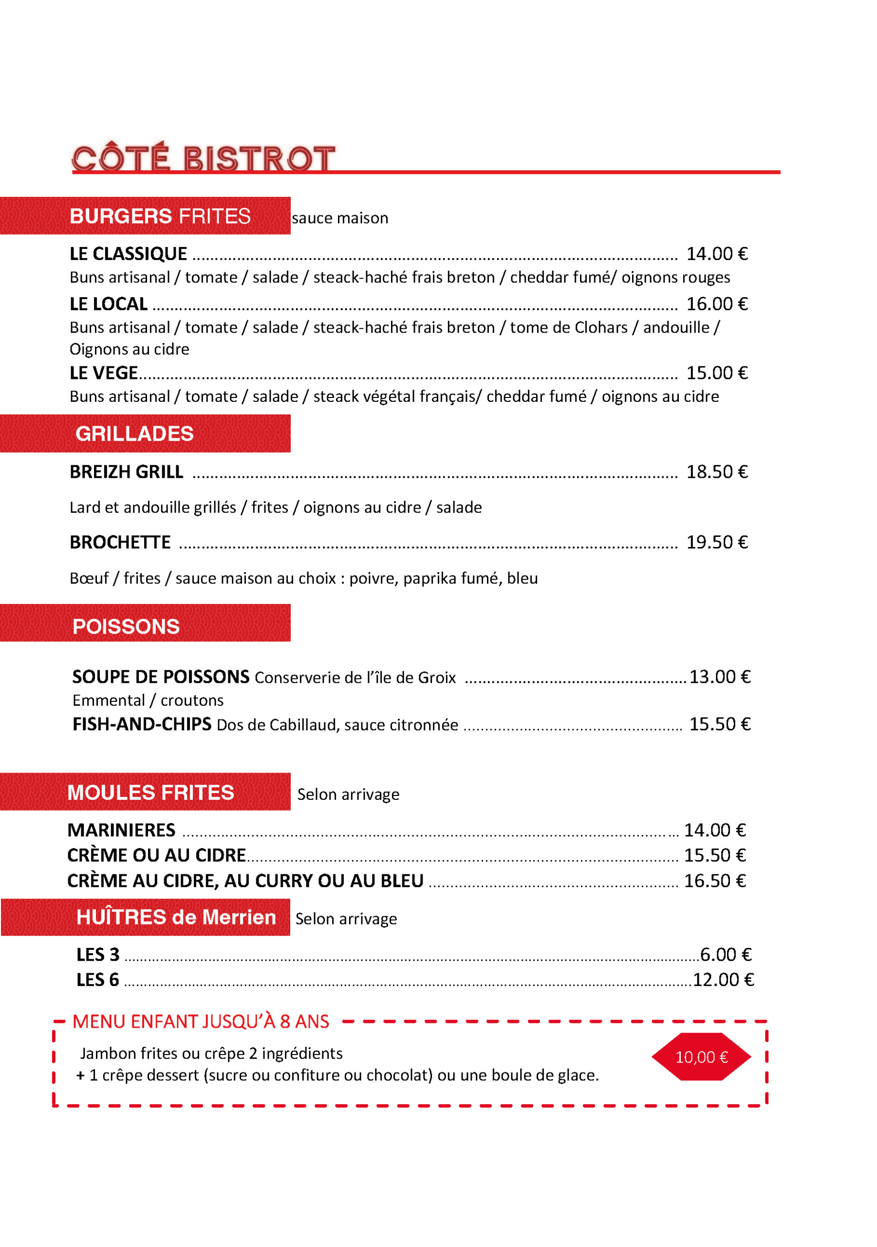 Nous avons à cœur de réaliser des plats familiaux et réconfortants en partenariat avec nos fournisseurs bretons. Les bières bretonnes, le cidre à la pression pourront accompagner moules , brochettes, produits de la mer, burgers et pizzas.