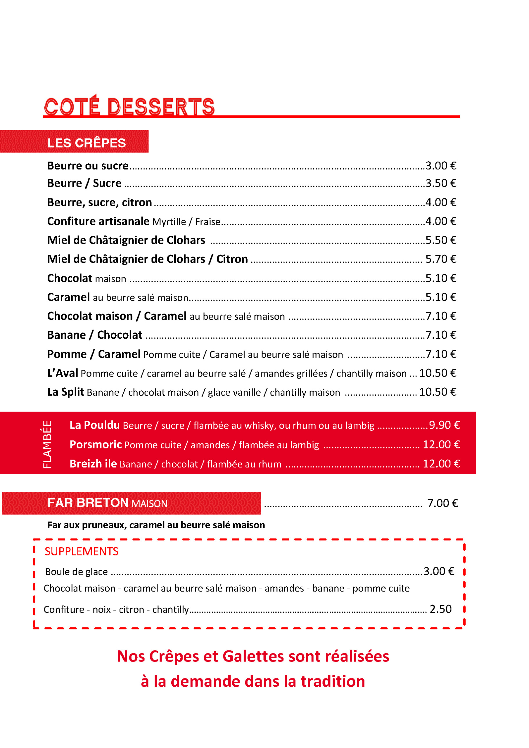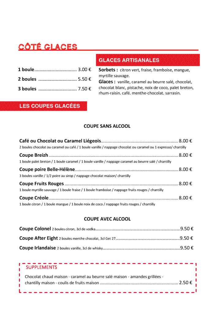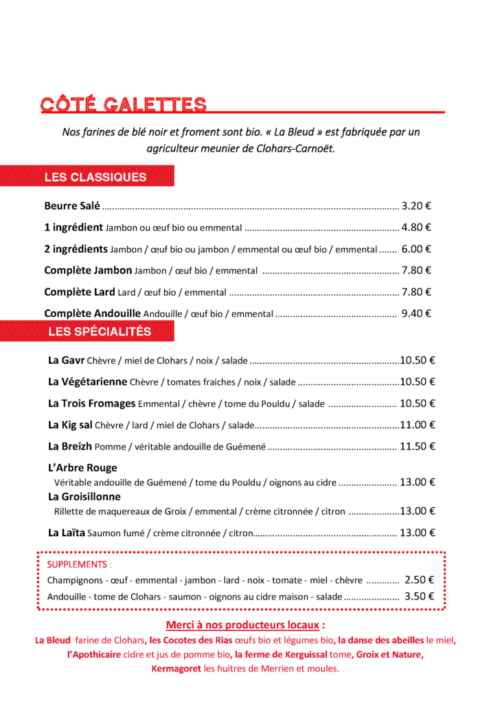 Nos crêpes et galettes sont réalisées dans la tradition avec des produits locaux et bretons avec des fournisseurs respectueux de l’environnement.